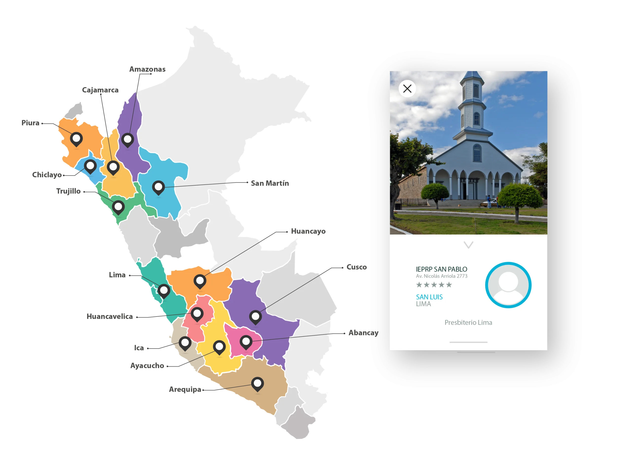 Nuestro mapa muestra la ubicación de las congregaciones de la Iglesia Evangélica Presbiteriana y Reformada en el Perú, una red de comunidades unidas en la fe y el servicio a Cristo a lo largo del país.